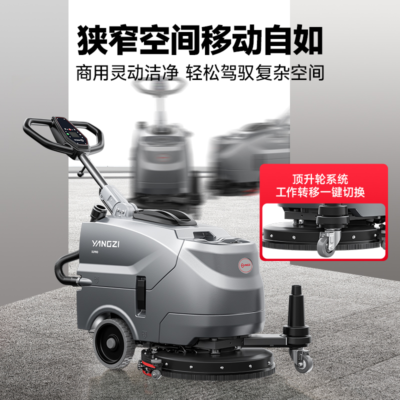 揚(yáng)子YZ-X1pro小型商用洗地機(jī),機(jī)身寬度僅45cm,可在商超餐廳等場景內(nèi)使用,貼墻清潔輕松使用清潔無死角,176半包圍靈動吸水扒,秒干不留痕轉(zhuǎn)彎不漏水,頂升輪一鍵升降,操作手感隨心掌控